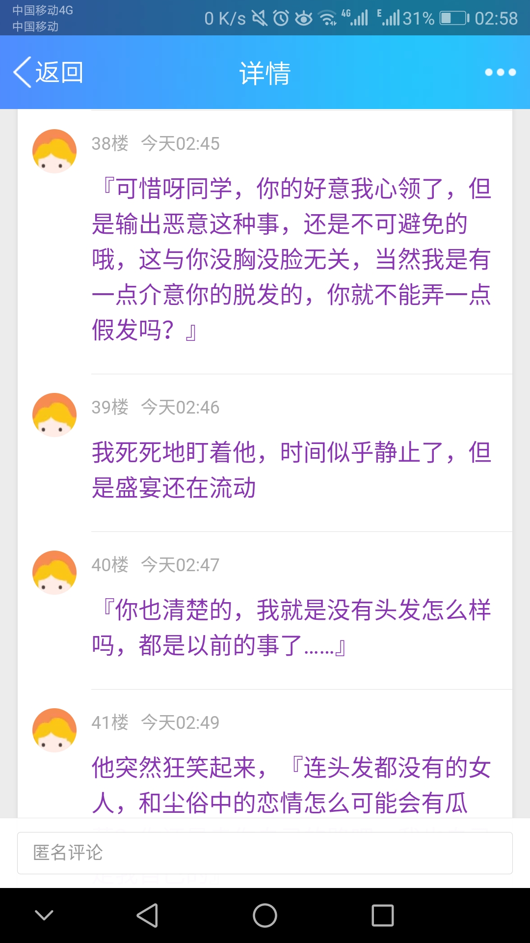 『可惜呀同学,你的好意我心领了,但是输出恶意这种事,还是不可避免的哦,这与你没胸没脸无关,当然我是有一点介意你的脱发的,你就不能弄一点假发吗?』