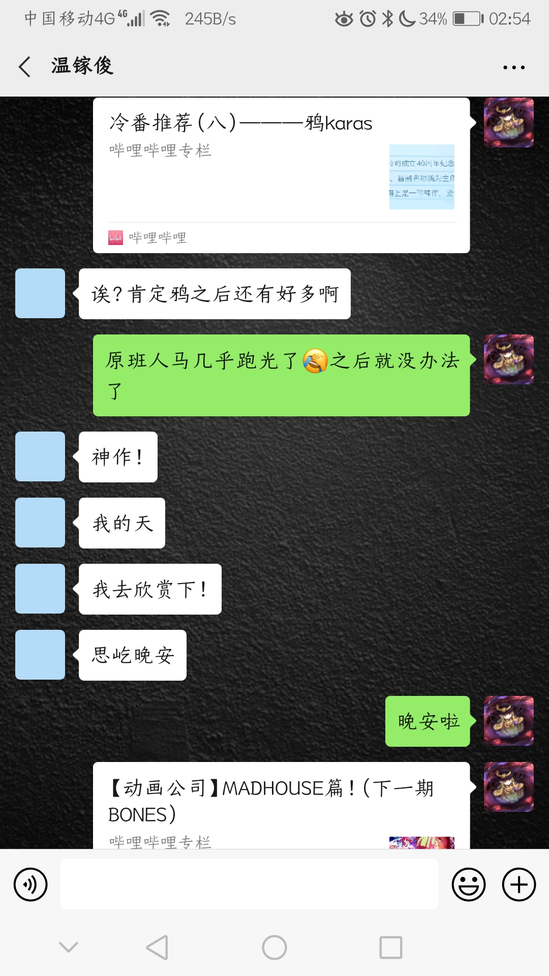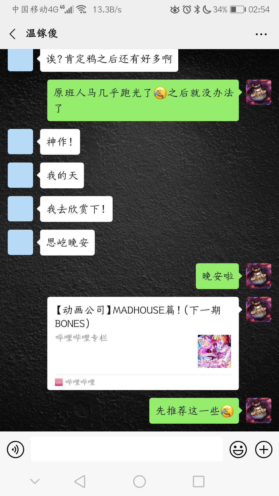 温镓俊-聊天记录 发表于 2020-04-01 更新于 2025-11-26 本文字数: 123 阅读时长 ≈ 1 分钟 海马-汤浅政明刀语-西尾维新灰羽联盟-安倍吉俊重启咲良田-河野裕鸦KARAS-龙之子工作室 这些应该都可以被google搜到,如果你们在看到这篇文章时链接不幸挂掉了的话,你们直接往google里面输入海马 汤浅政明类似这样的搜索字词就可以搜到对应作品