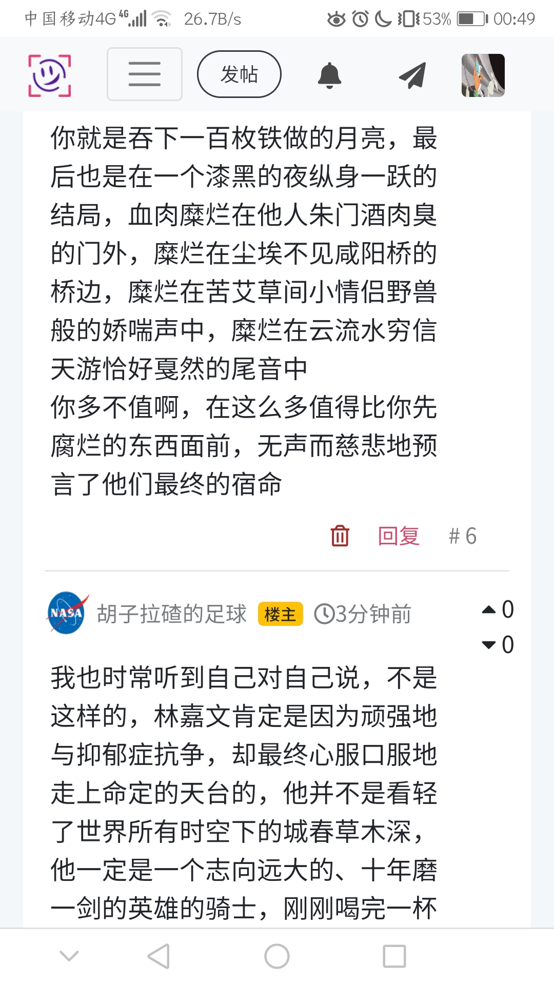 我也时常听到自己对自己说,不是这样的,林嘉文肯定是因为顽强地与抑郁症抗争,却最终心服口服地走上命定的天台的,他并不是看轻了世界所有时空下的城春草木深,他一定是一个志向远大的、十年磨一剑的英雄的骑士,刚刚喝完一杯马黛茶,然后不小心被小流氓的走火枪打死,然后故事结束,一定是这样尴尬而巧合的故事,一定是