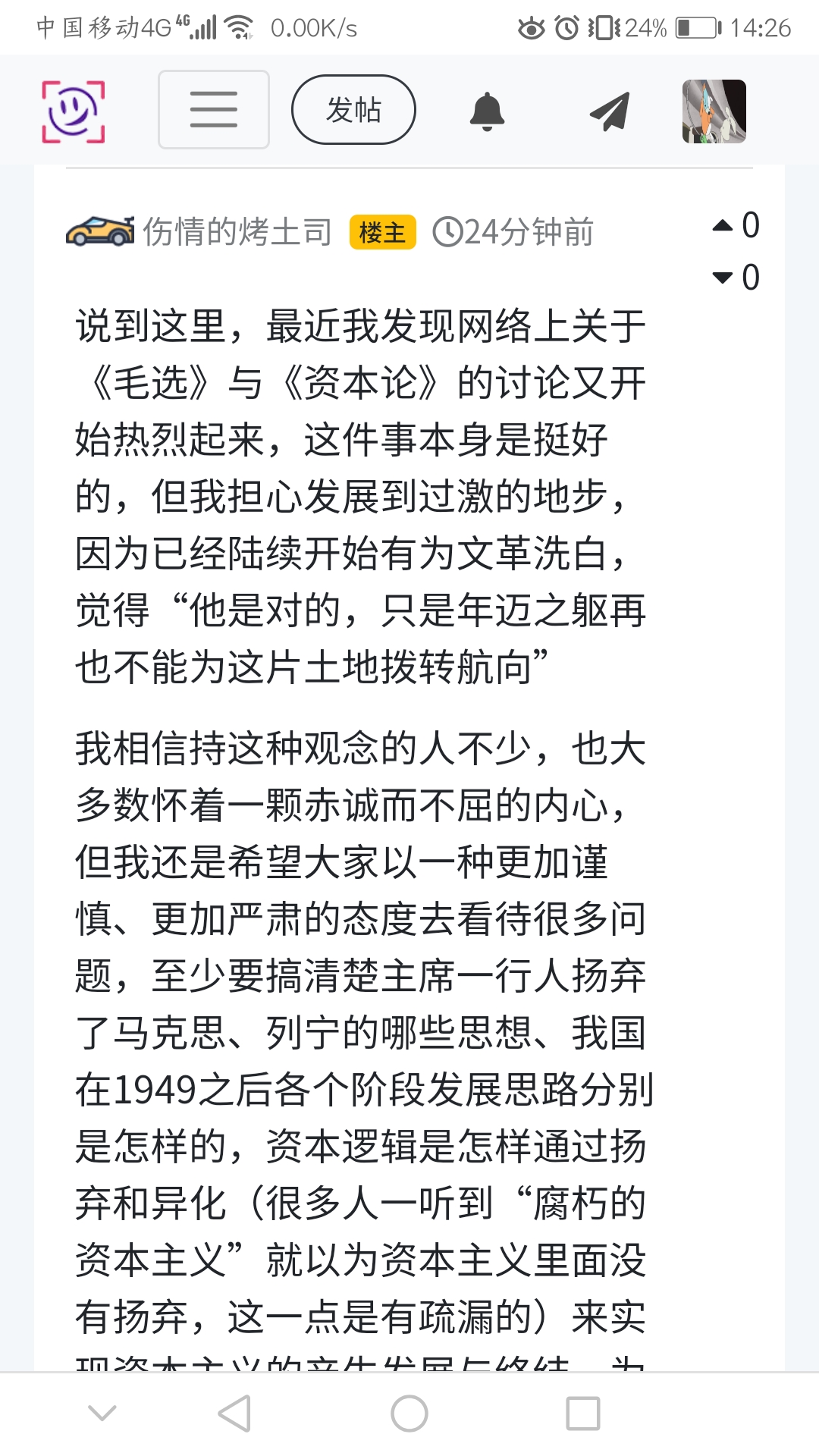 说到这里,最近我发现网络上关于《毛选》与《资本论》的讨论又开始热烈起来,这件事本身是挺好的,但我担心发展到过激的地步,因为已经陆续开始有为文革洗白,觉得“他是对的,只是年迈之躯再也不能为这片土地拨转航向”