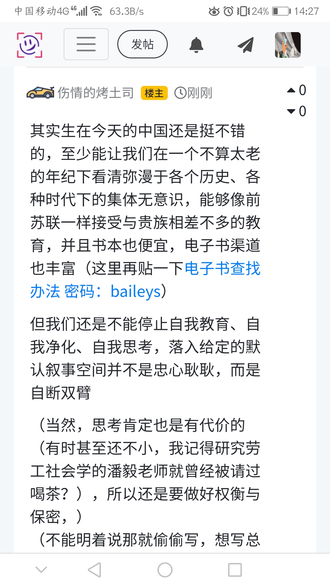 其实生在今天的中国还是挺不错的,至少能让我们在一个不算太老的年纪下看清弥漫于各个历史、各种时代下的集体无意识,能够像前苏联一样接受与贵族相差不多的教育,并且书本也便宜,电子书渠道也丰富(这里再贴一下电子书查找办法 密码:baileys)