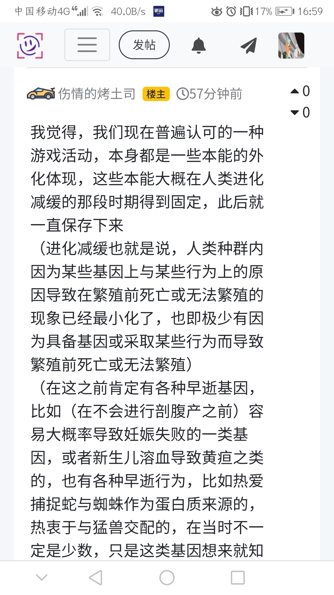 我觉得,我们现在普遍认可的一种游戏活动,本身都是一些本能的外化体现,这些本能大概在人类进化减缓的那段时期得到固定,此后就一直保存下来