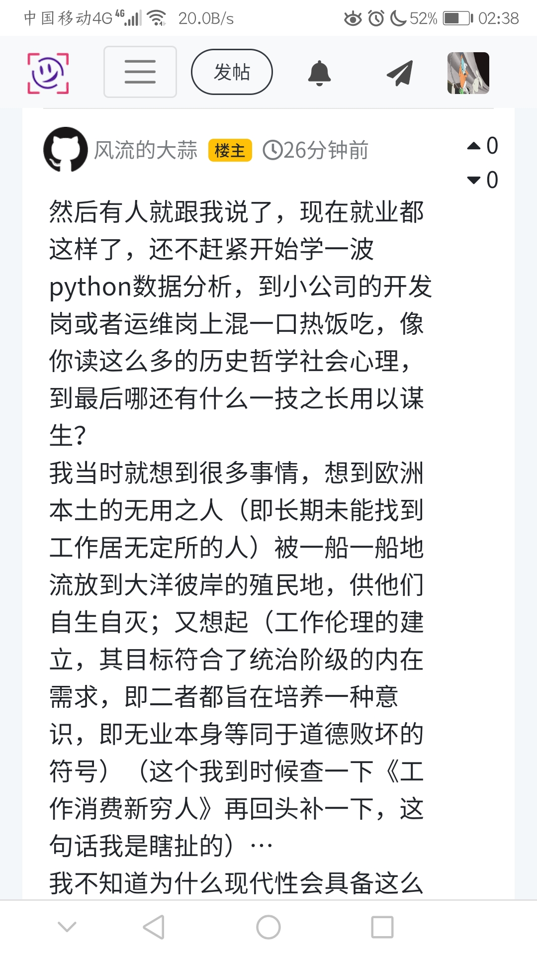 然后有人就跟我说了,现在就业都这样了,还不赶紧开始学一波python数据分析,到小公司的开发岗或者运维岗上混一口热饭吃,像你读这么多的历史哲学社会心理,到最后哪还有什么一技之长用以谋生?