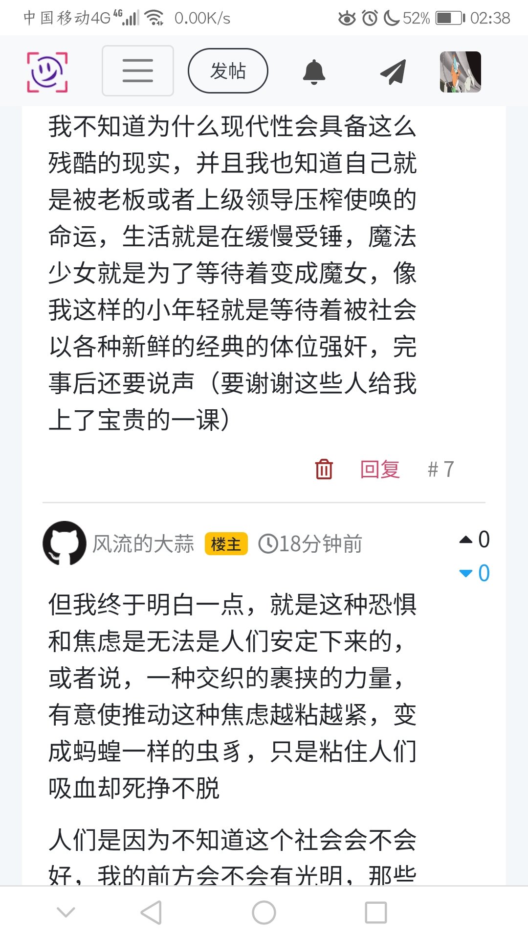 我不知道为什么现代性会具备这么残酷的现实,并且我也知道自己就是被老板或者上级领导压榨使唤的命运,生活就是在缓慢受锤,魔法少女就是为了等待着变成魔女,像我这样的小年轻就是等待着被社会以各种新鲜的经典的体位强奸,完事后还要说声(要谢谢这些人给我上了宝贵的一课)