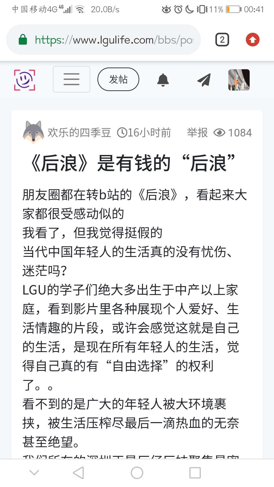 即使是所谓接受了良好教育的LGU学子,在深圳极高房价的基础上,再加上疫情的就业寒冬,能看到的未来也很渺茫吧。从小浸淫于小资生活,我们的同学又能看到多少社会现实呢(坪山可就在深圳)。为什么宣传口认为这一代“后浪”的生活值得羡慕呢?