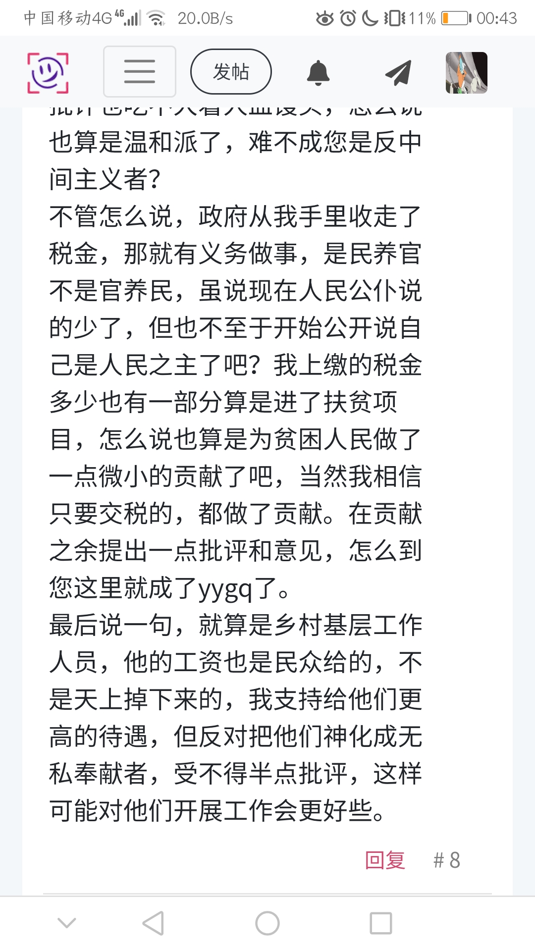 最后说一句,就算是乡村基层工作人员,他的工资也是民众给的,不是天上掉下来的,我支持给他们更高的待遇,但反对把他们神化成无私奉献者,受不得半点批评,这样可能对他们开展工作会更好些。