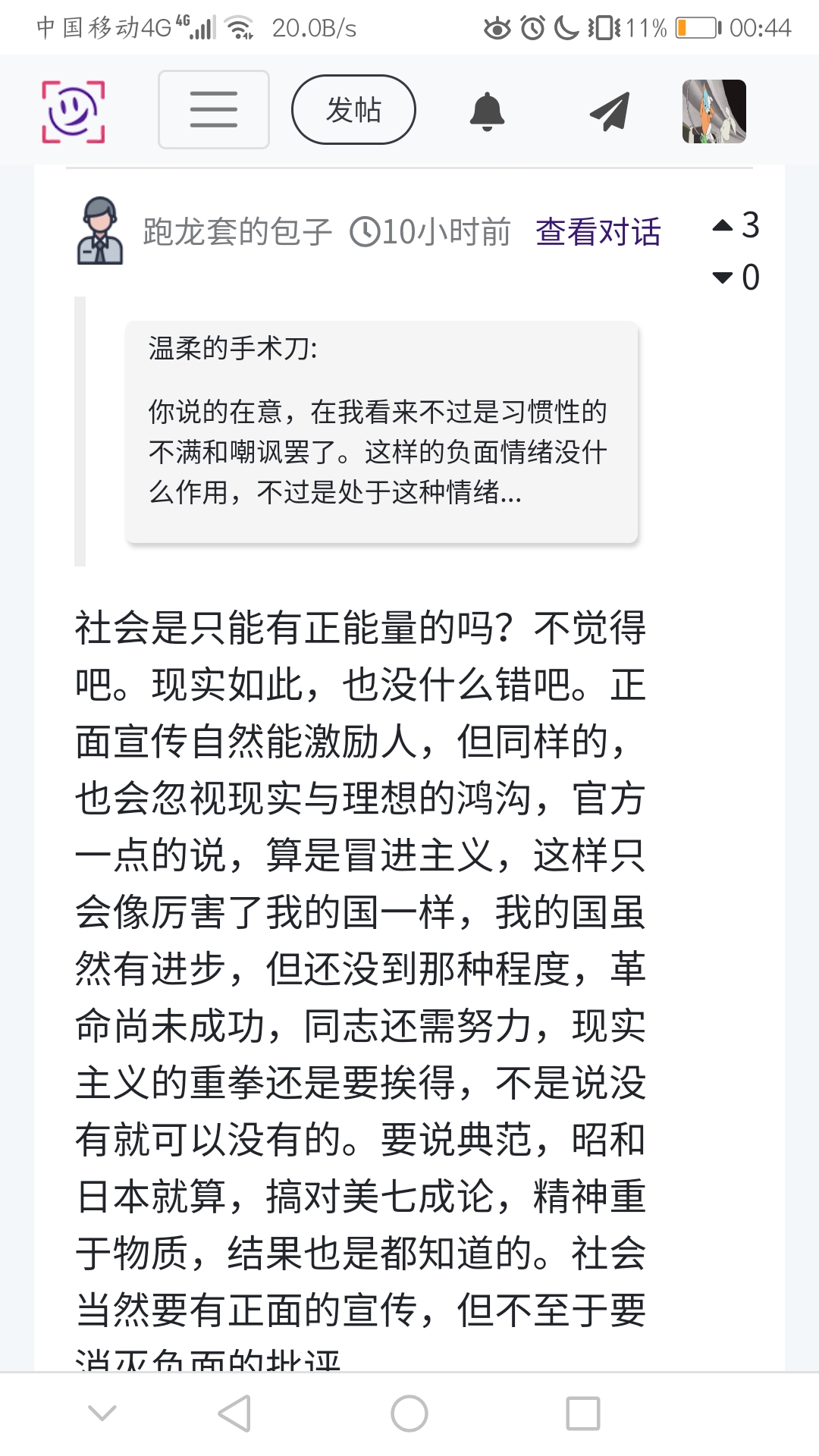 社会是只能有正能量的吗?不觉得吧。现实如此,也没什么错吧。正面宣传自然能激励人,但同样的,也会忽视现实与理想的鸿沟,官方一点的说,算是冒进主义,这样只会像厉害了我的国一样,我的国虽然有进步,但还没到那种程度,革命尚未成功,同志还需努力,现实主义的重拳还是要挨得,不是说没有就可以没有的。要说典范,昭和日本就算,搞对美七成论,精神重于物质,结果也是都知道的。社会当然要有正面的宣传,但不至于要消灭负面的批评。