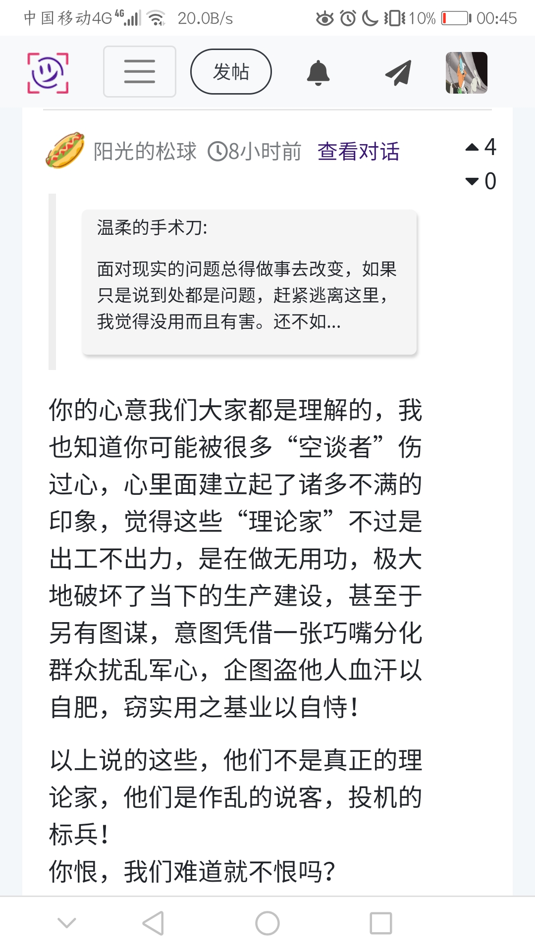 你的心意我们大家都是理解的,我也知道你可能被很多“空谈者”伤过心,心里面建立起了诸多不满的印象,觉得这些“理论家”不过是出工不出力,是在做无用功,极大地破坏了当下的生产建设,甚至于另有图谋,意图凭借一张巧嘴分化群众扰乱军心,企图盗他人血汗以自肥,窃实用之基业以自恃!