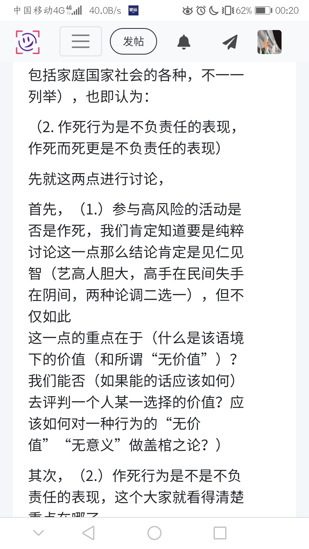 首先,(1.)参与高风险的活动是否是作死,我们肯定知道要是纯粹讨论这一点那么结论肯定是见仁见智(艺高人胆大,高手在民间失手在阴间,两种论调二选一),但不仅如此