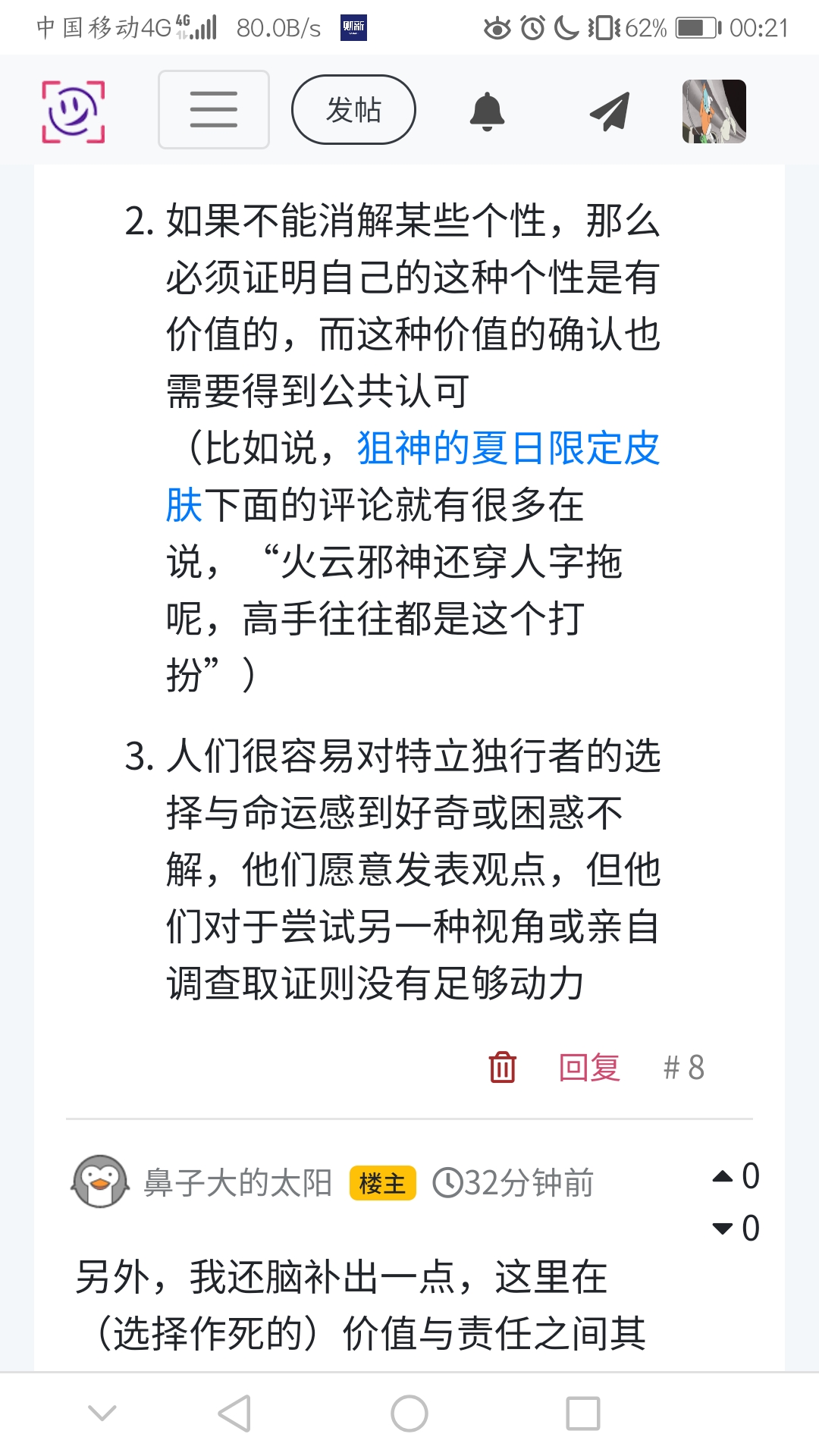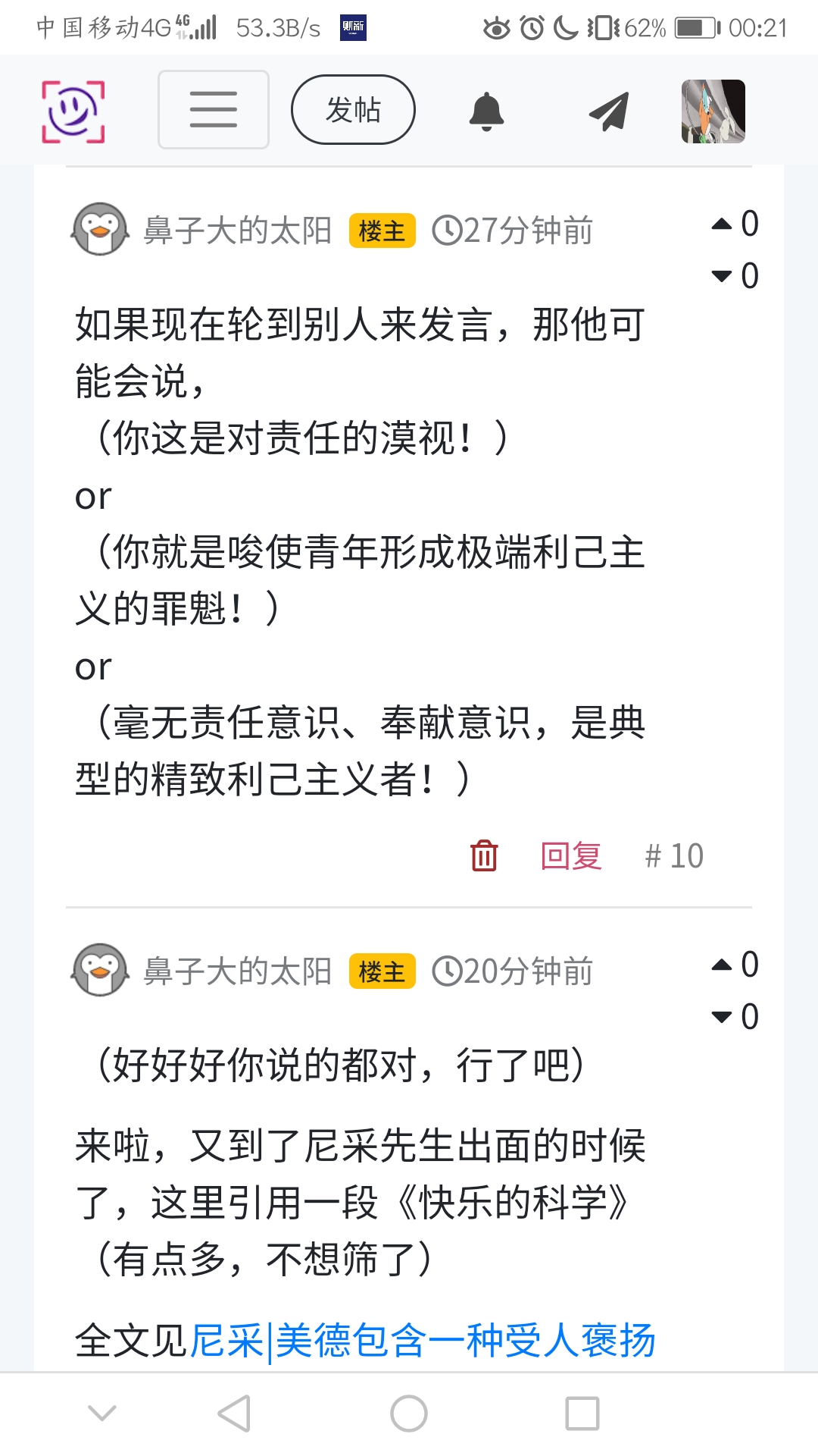 我也知道我现在讲(人应当为自己的选择负责,买定离手愿赌服输,但同时对同类的选择就请free of judging)肯定会有更多人觉得我是在歌颂这种愚蠢的送死行为,这个是可以理解的,但是我突然之间察觉到了一点,这一点就使得我能够从道德层面上的火力受制点逃出来(说起来我还从来没有参加过辩论赛(也从来没想过去参加,因为万物有成理而不说),但我觉得这种感觉或许有点像找到了一个好的反击点的样子,不知道是不是这样)
