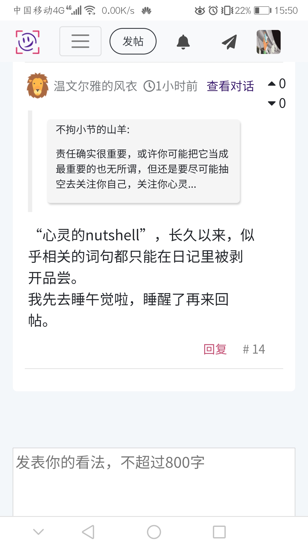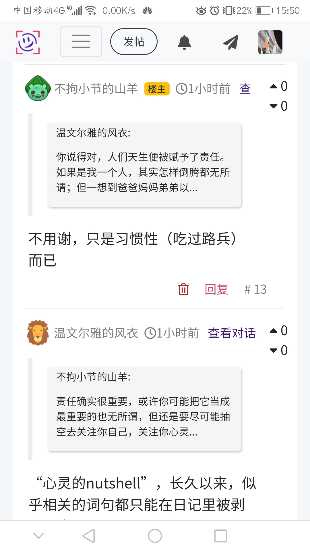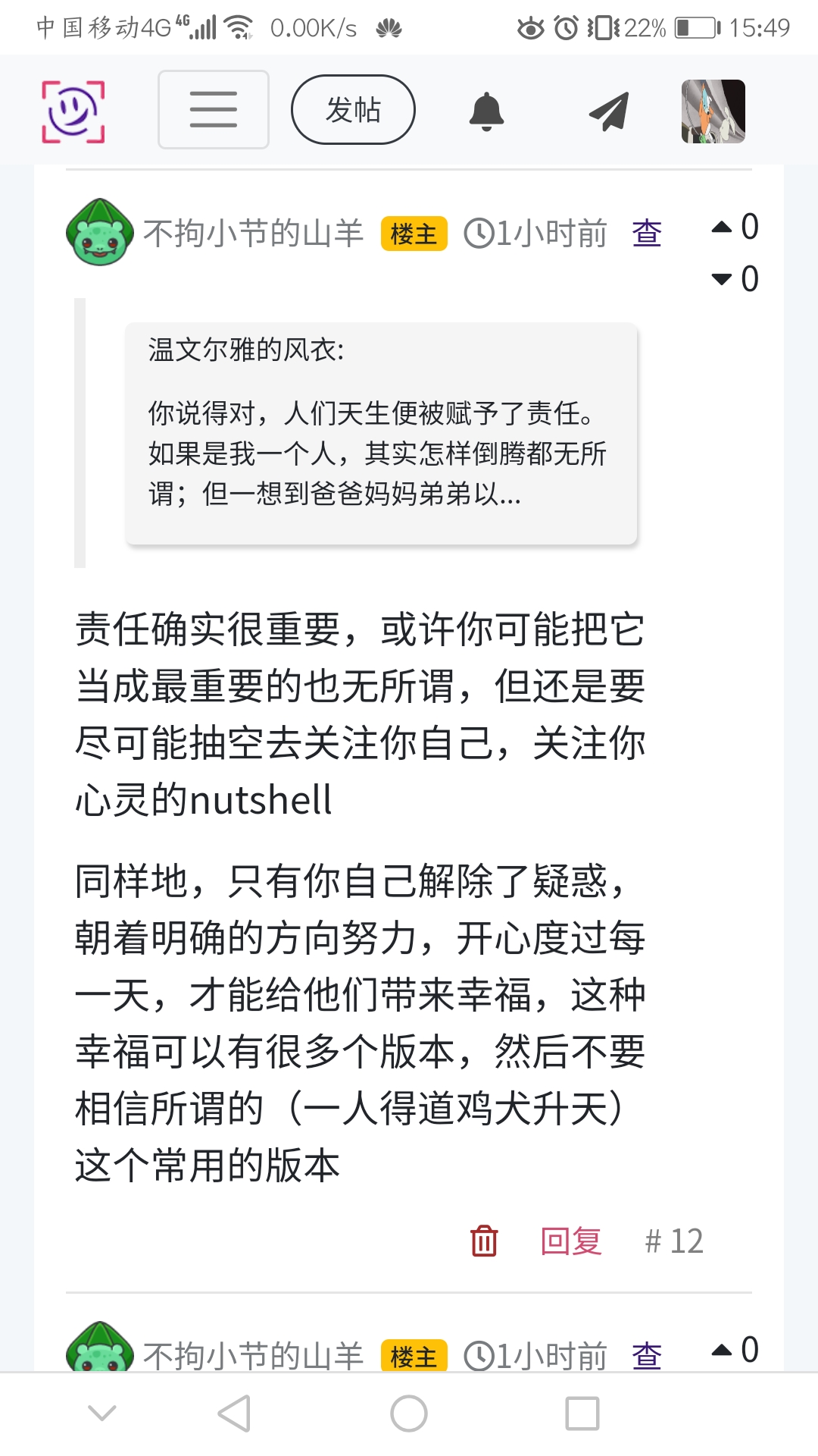 责任确实很重要,或许你可能把它当成最重要的也无所谓,但还是要尽可能抽空去关注你自己,关注你心灵的nutshell