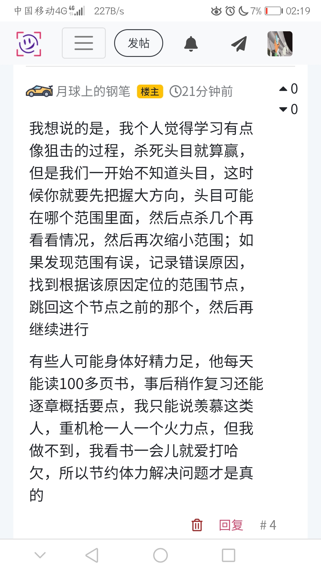 有些人可能身体好精力足,他每天能读100多页书,事后稍作复习还能逐章概括要点,我只能说羡慕这类人,重机枪一人一个火力点,但我做不到,我看书一会儿就爱打哈欠,所以节约体力解决问题才是真的