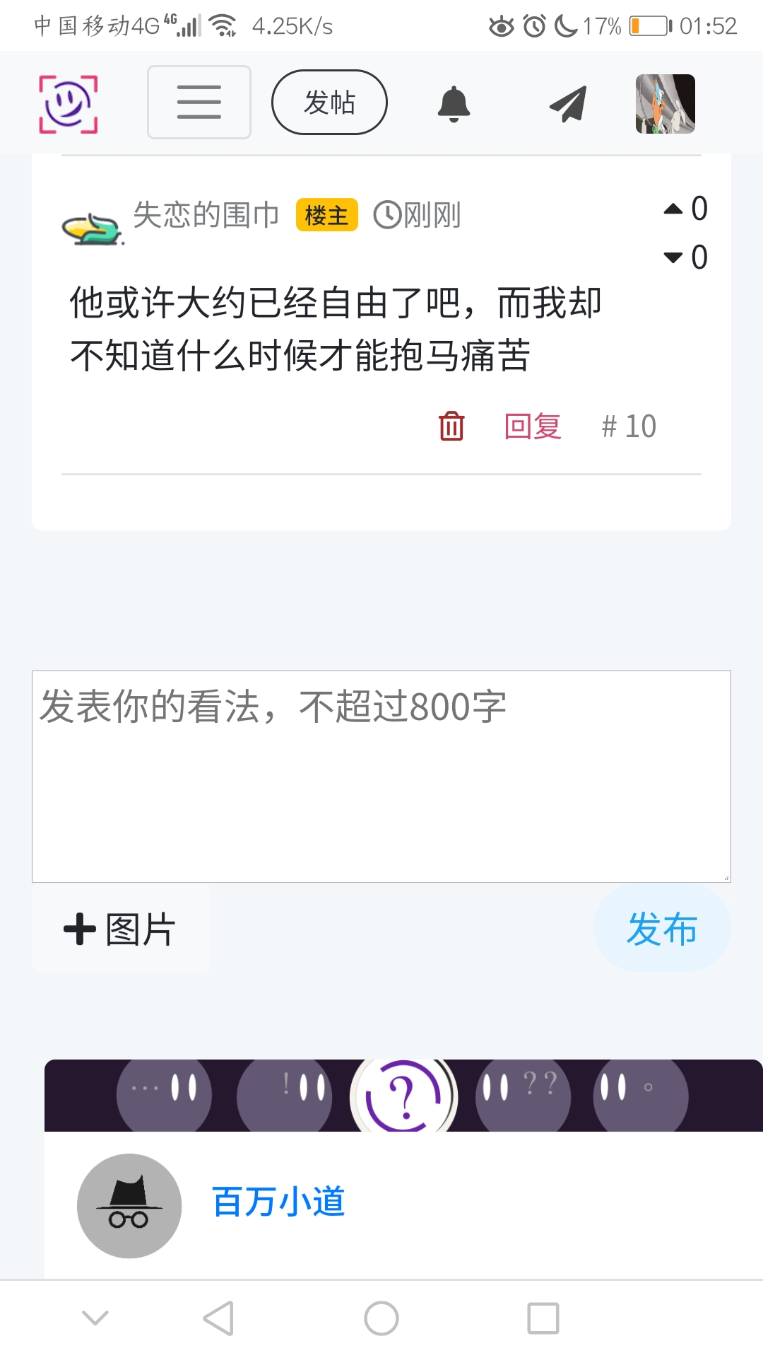 他或许大约已经自由了吧,而我却不知道什么时候才能抱马痛哭