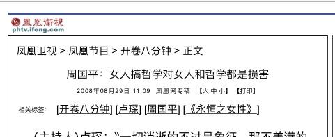 柯希莫(墨菲、橙泥):周国平一生黑,他那个什么岁月与性情真是恶臭不堪,我不知道说什么男读王小波女读周国平的是个什么居心。而且虽说门外汉,但就其表现而言我也怀疑他的水平。在我眼里他真就是北大哲学系之耻。