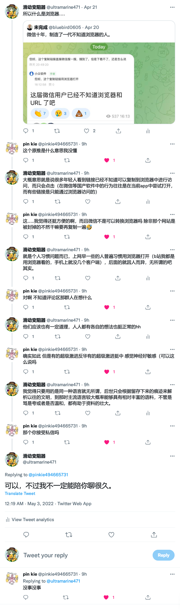 @pinkie494665731 就虽然说不要二极管思维吧但是我其实在推特上看到诋毁中国的人还是会挺生气的