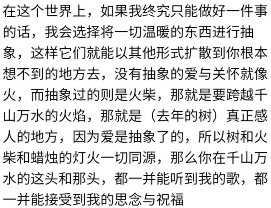 (看到了吧,我就是这样自私,软弱,疯狂地渴求关于爱、关于珍惜、关于守护的一系列确认,我想一直像刚出生那样幼小、柔软,却充满希望与喜悦,这样他们就不会有后来的逐步的失望,不会有伴随教育而滋生的,那些关于成长的、人际的乃至世俗哲学上的苦恼,不会觉得我糟蹋了他们的希望…)