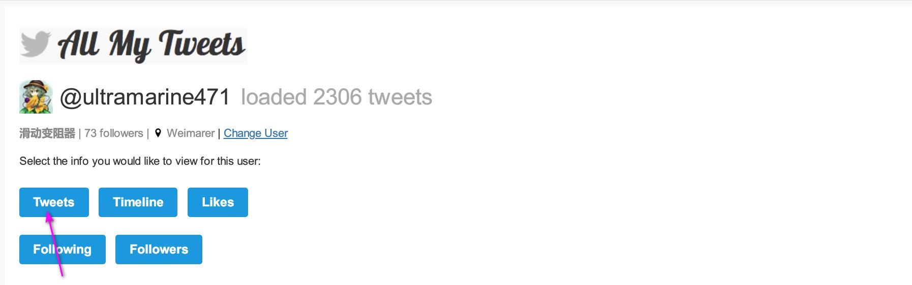 首先我们用这个https://web.archive.org/web/20220315175419/https://www.allmytweets.net/connect/登录,这边我预设了该网站的可信性,有疑虑的可以先不用。 我这边用我的来示范下。