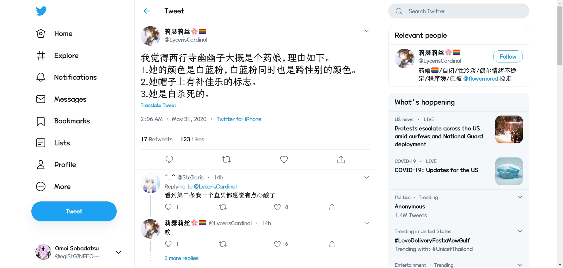 最后再贴一个我很久以前就有的想法,就是幽幽子就是一个药娘
