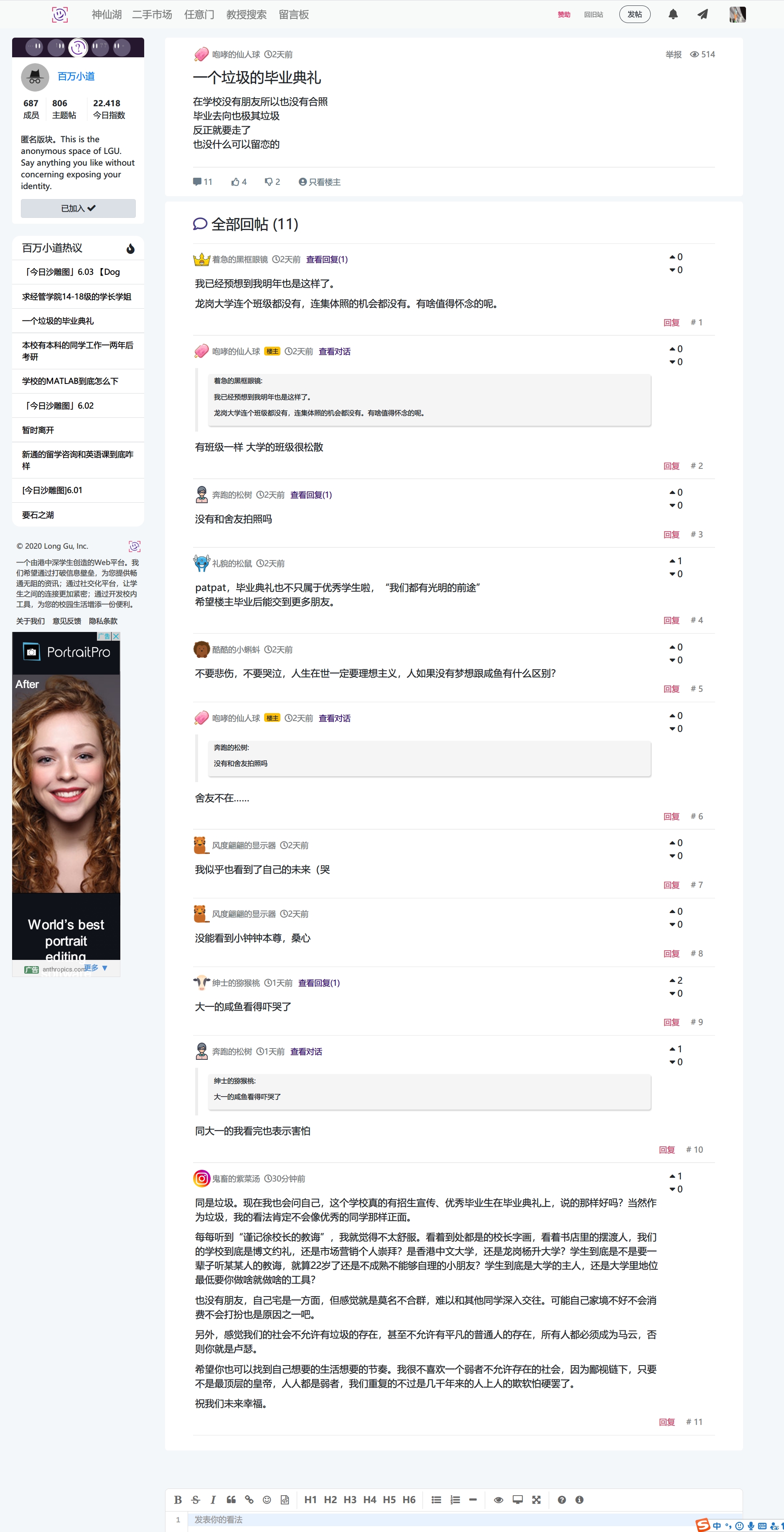所以我很庆幸就是我的文章能够唤醒这个学校里面部分人的警醒,这件事真的很难,但在我们学校应该算是最简单的事情了,因为我们学校应该算是平均富裕程度最高的学校了,这样的环境下都没法迸发出思想的火苗,怀疑的火种,那真就没几个人能把这炬火传递下去了