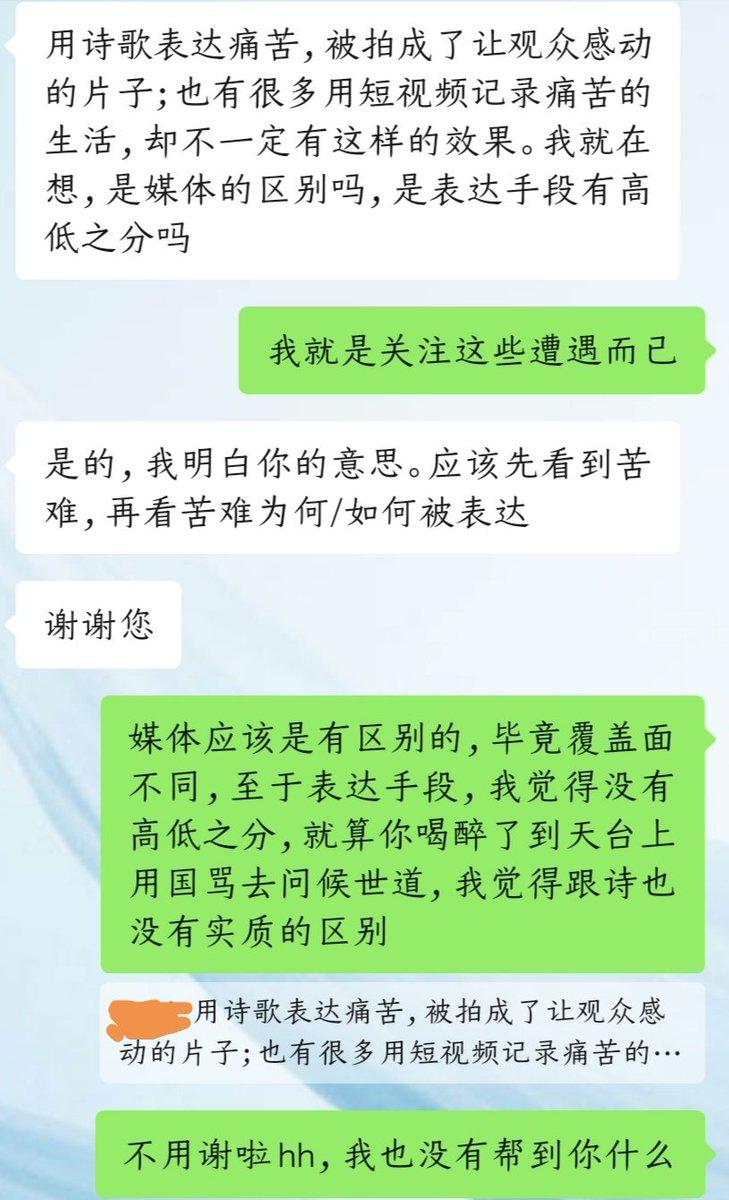 用诗歌表达痛苦,被拍成了让观众感动的片子;也有很多用短视频记录痛苦的生活,却不一定有这样的效果。我就在想,是媒体的区别吗,是表达手段有高低之分吗