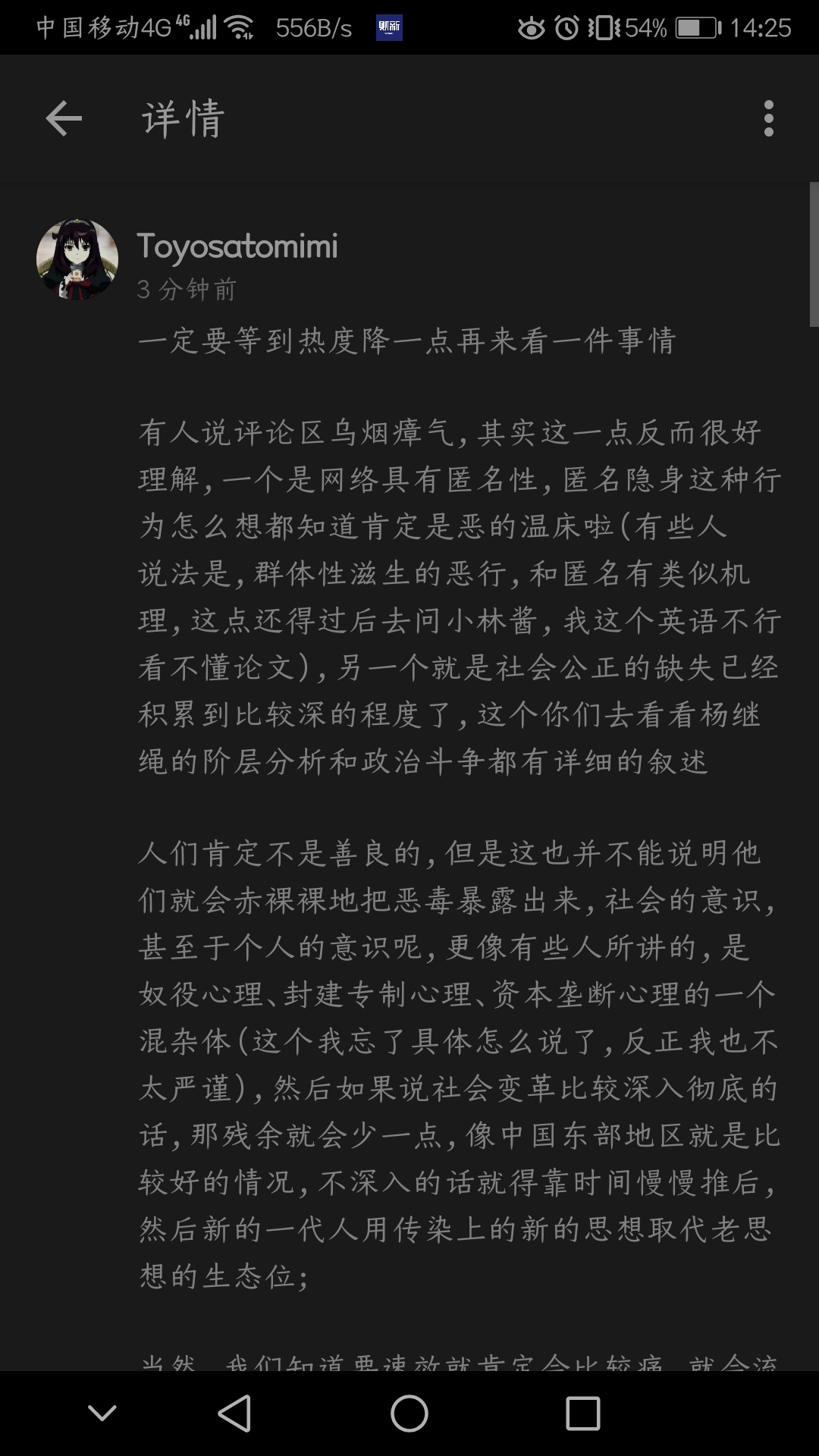 说法是,群体性滋生的恶行,和匿名有类似机理,这点还得过后去问小林酱,我这个英语不行看不懂论文),另一个就是社会公正的缺失已经积累到比较深的程度了,这个你们去看看杨继绳的阶层分析和政治斗争都有详细的叙述